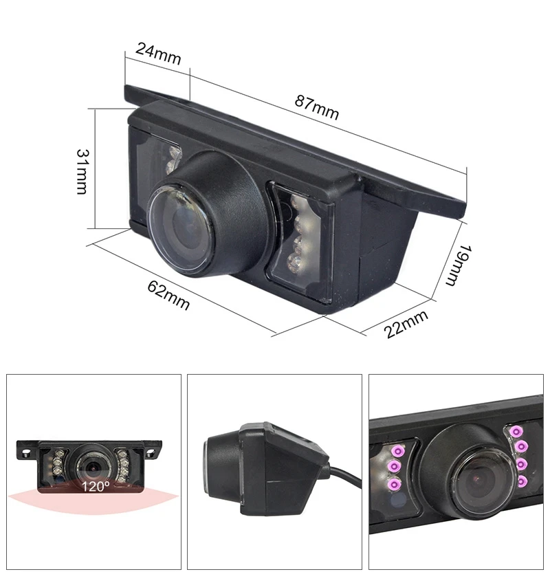 Cámara de visión trasera 4LED de 5 pines para coche, cámara de visión trasera de 135 grados, gran angular, cámaras de aparcamiento automático, cámara de salpicadero conectora